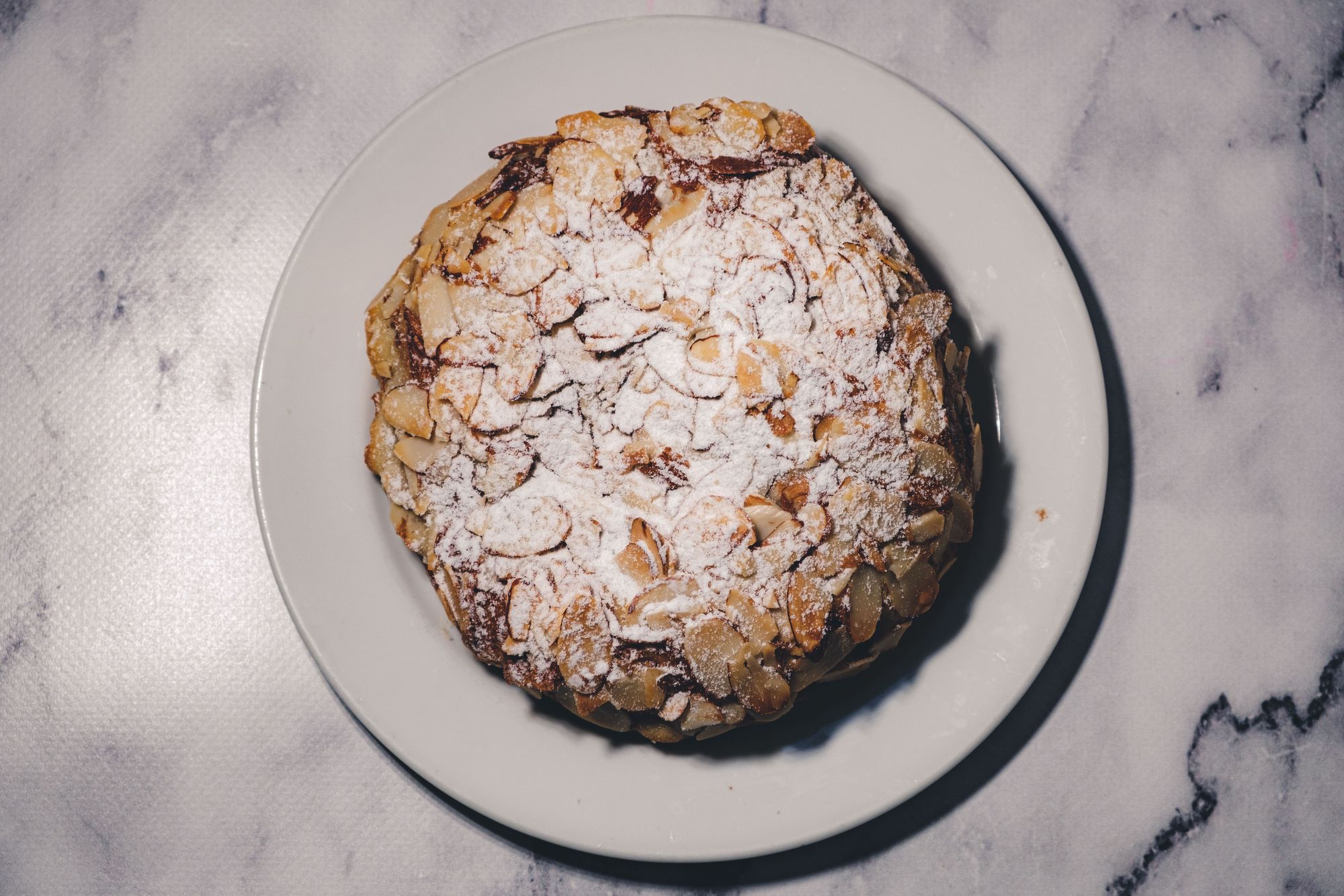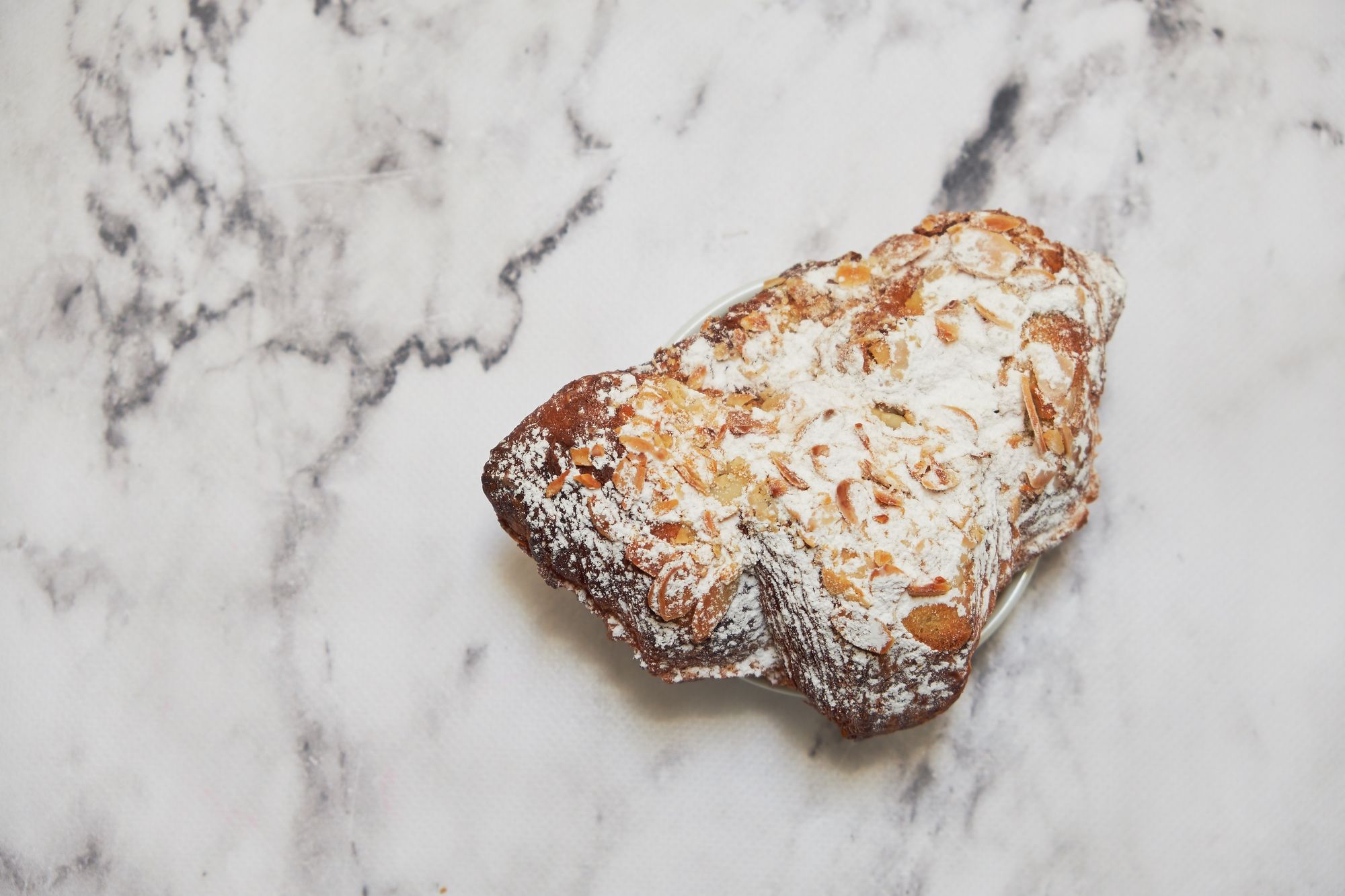 The cross-section looks like a croissant, and the thing is priced like a good croissant, but this is no artisanal croissant. Copious amounts of powdered sugar make this sweeter than it needs to be, the breadiness leaves much butter to be desired for, and the runny filling tastes more like run-of-the-mill marzipan than almond paste. Among the breadiness is maybe one croissant-like fold, but there are too many things wrong with this overpriced piece of circular candied bread to recommend.