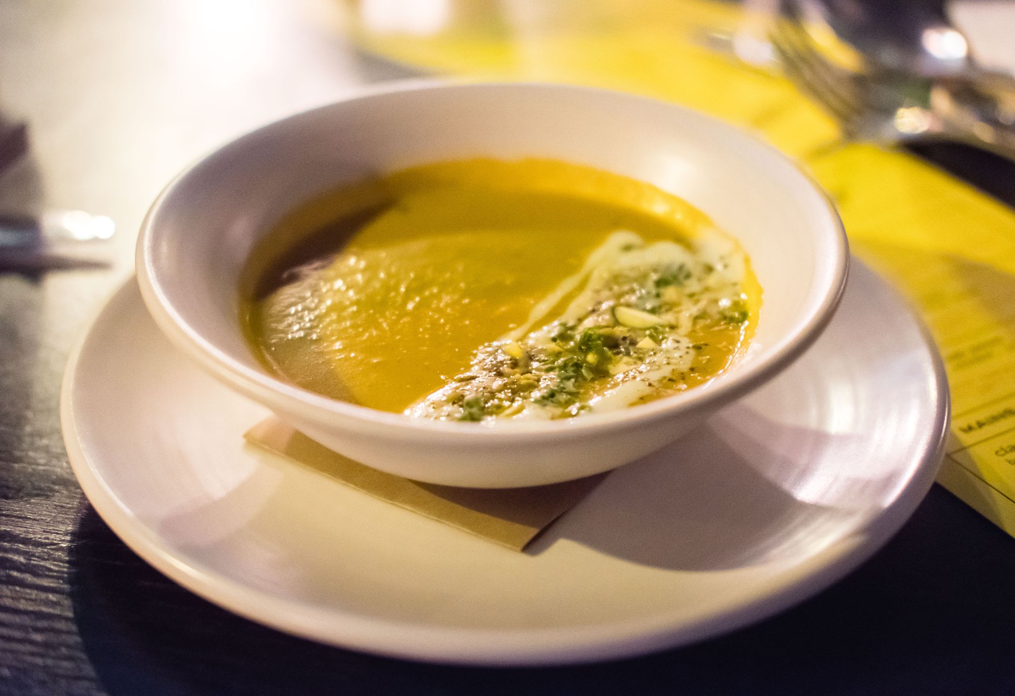 On the seasonal soup side of things, butternut squash soup was this season's offering. Served with a smooth line of pistachio and cream, this was a pleasant-looking dish with a dense, hearty butternut consistency. In many midrange restaurants, butternut squash soup is a staple, but here it's a new item for The Blackbird bar scene that Donnelly Group resides in.