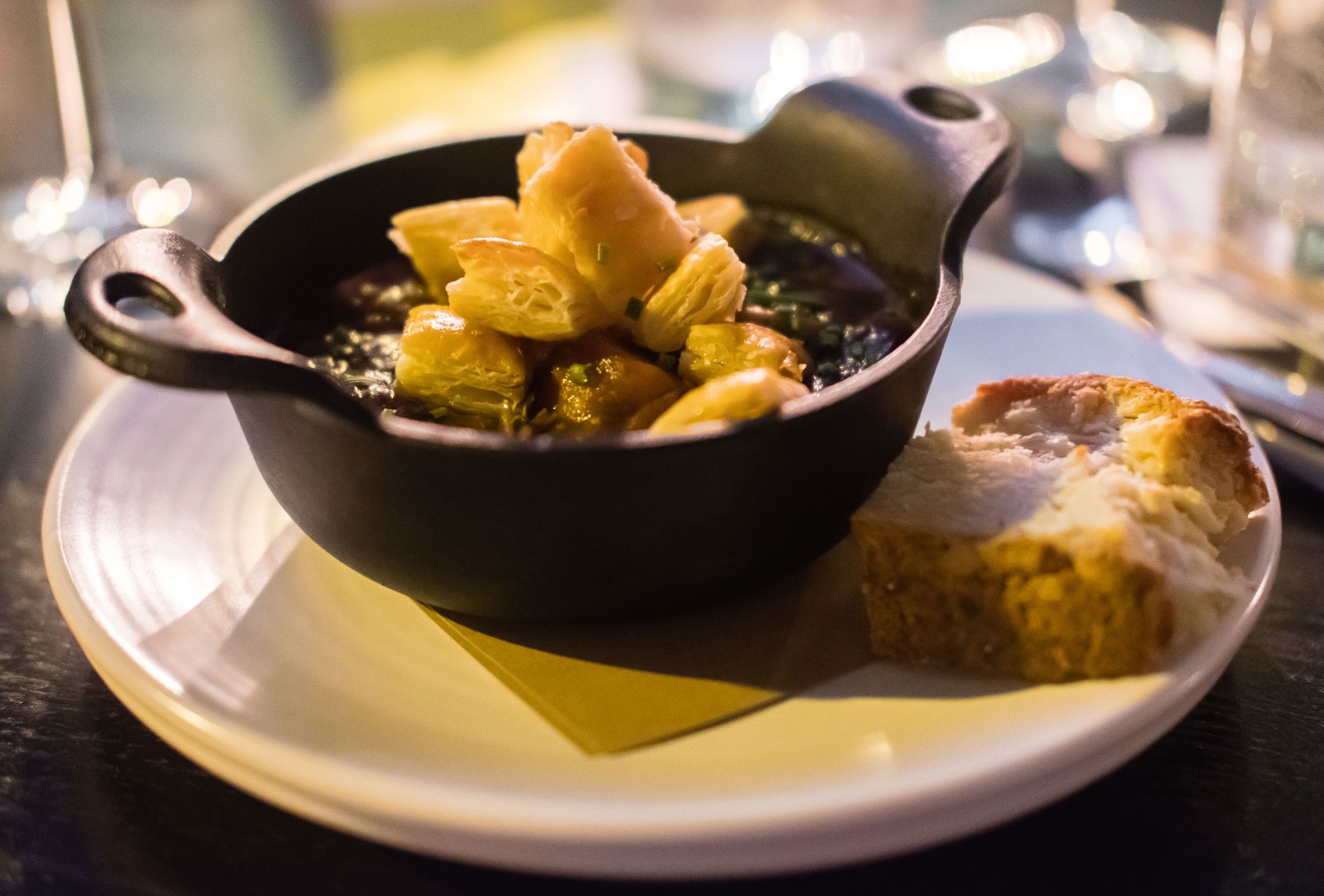 The phyllo mushroom stew was my favourite dish of the night. This was a hearty cast-iron bucket of gravy-like mushroom stew with a small mound of phyllo bread to scoop it with. The flakiness of the phyllo was a great way to scoop up heaping servings of stew and I thought this was the most creatively-charged item of the evening. If the phyllo bread wasn't enough, the soda bread on the side was a fluffy yet biscotti-like helping of carbs to help fill me out.