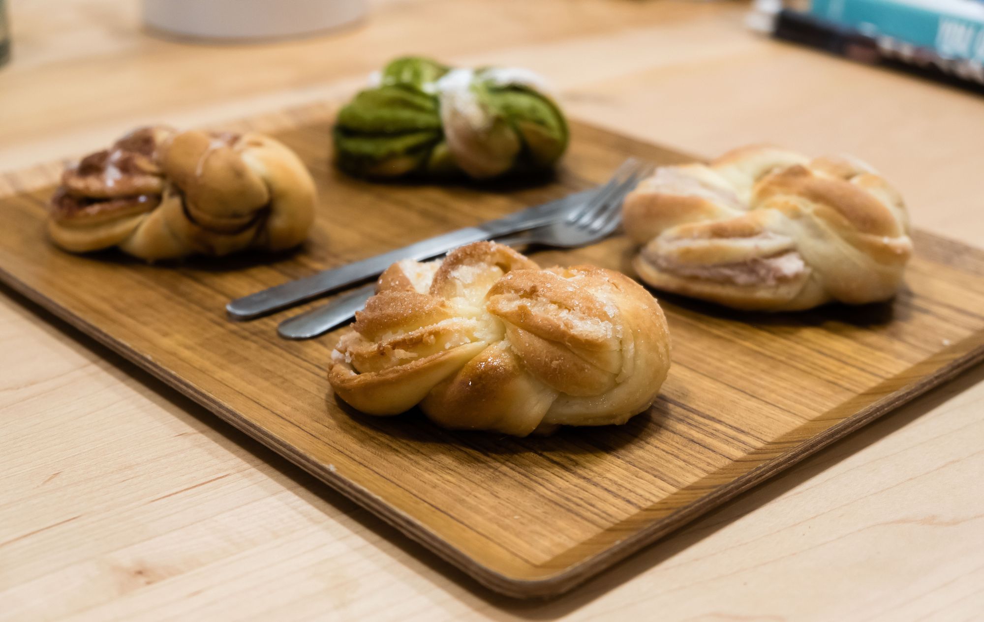 The matcha bun was my 3rd favourite bun. I'm a connoisseur of all things matcha but believe some might find the small sugar crystals embedded within the matcha paste to be a strange mix with the doughy bun. This would be best for matcha fans who need a bitter treat to pair with a sweeter drink.