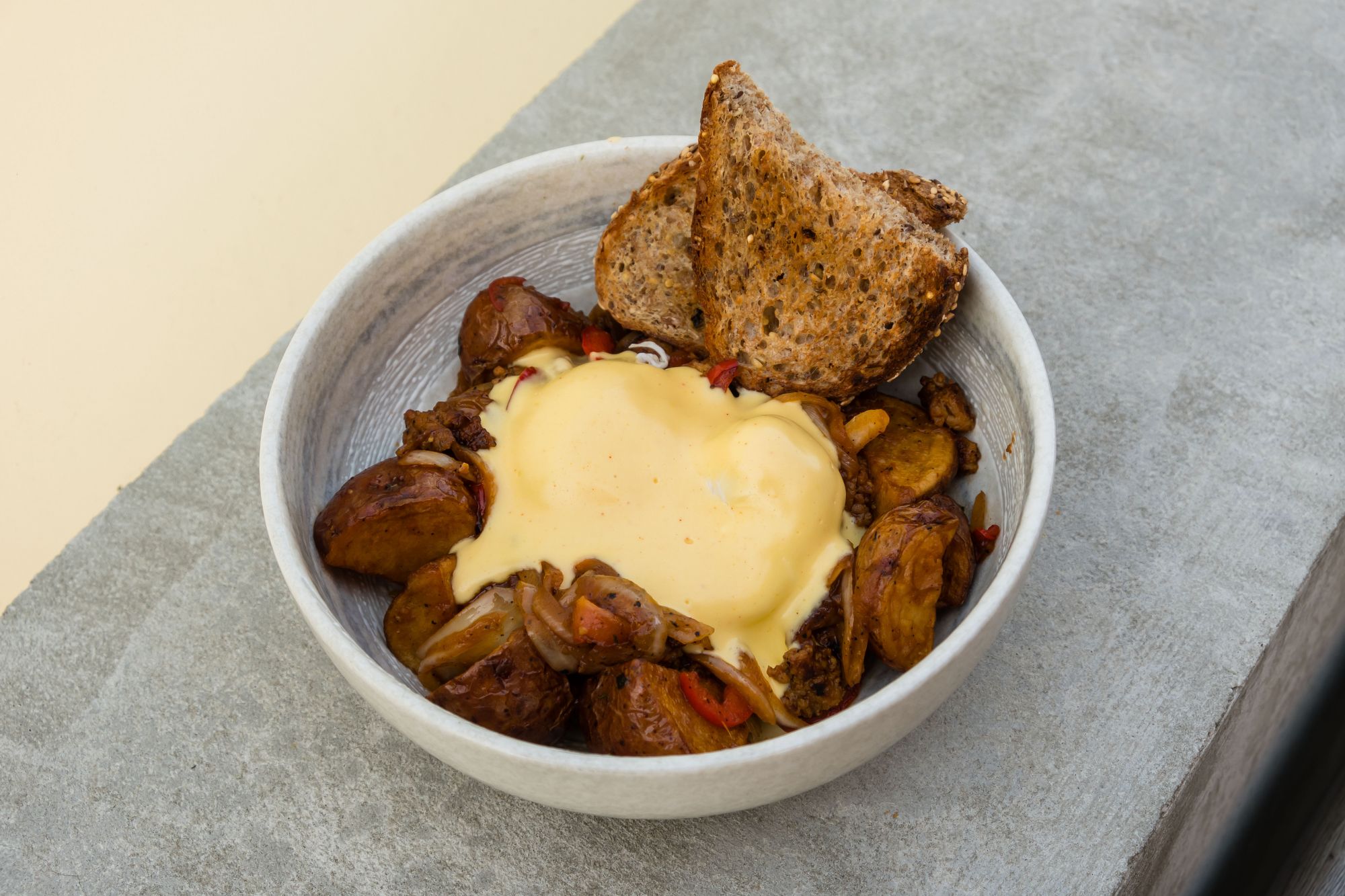 Last but not least, the stadium bowl. This was the dream for any potato lovers and the bane of anyone on a keto diet. Similar to the benny, these potatoes were plump and fluffy. The extra bit of hollandaise here went a long way in coating everything in a thin layer of sauce. Unlike the benny, the hollandaise had a bit of bell pepper and onion to give it the depth that was lacking above. The chorizo was cooked well and was as juicy as the caramelized onions. A couple slices of toast rounded out this carbohydrate paradise of a bowl. If you're a fan of the charlie bowl at Jam Cafe, this stadium bowl should be right up your alley.