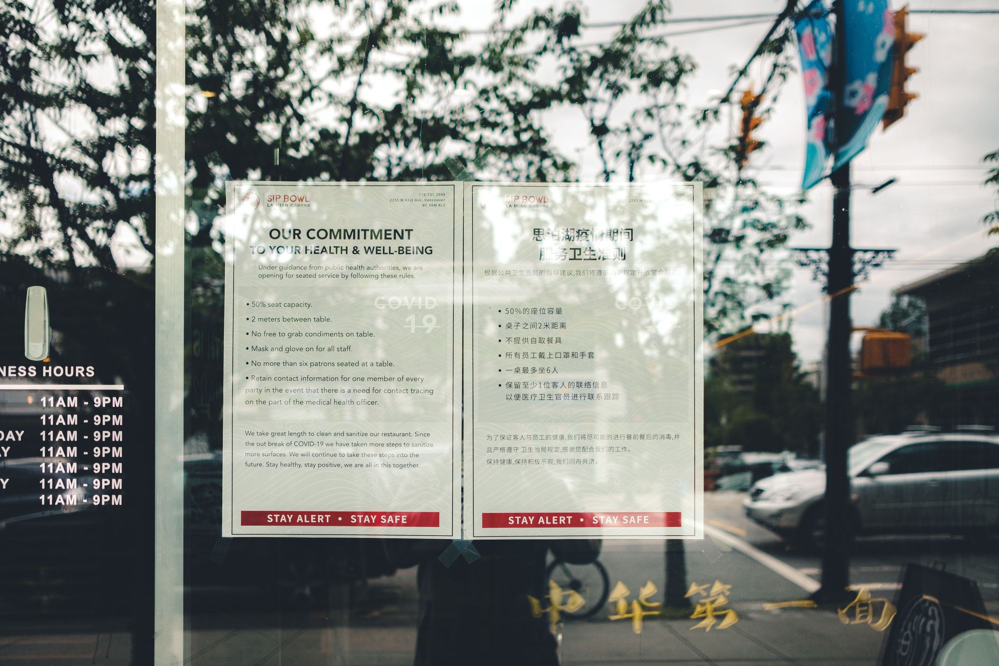 Here we are in June 2020, and restaurants are slowly opening again for dine-in service in Vancouver. Takeout was a thing for a lot of them the past two months but takeout is not really my thing. I prefer the experience of sitting in somebody else's dining room so I can a feel for their story and their vibe. Last week, I ventured out into one of the restaurant's on my "to do" list, Sip Bowl, which is a Lanzhou-style noodle shop in Vancouver's Kerrisdale. While the new normal is one with a lot more restrictions and rules, how much this restaurant follows its own stipulations is not really something I can vouch for, and we can walk through my experience together.