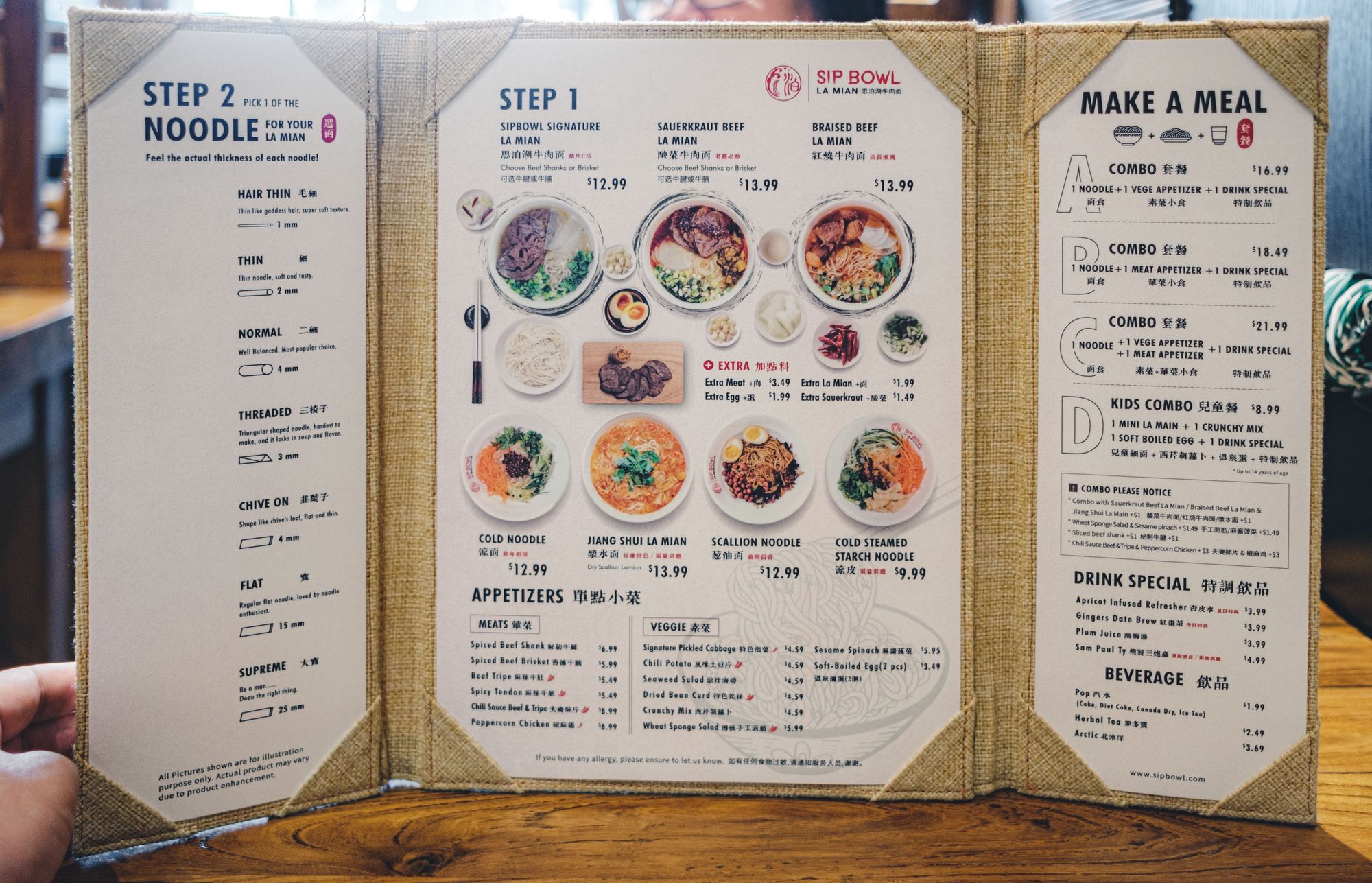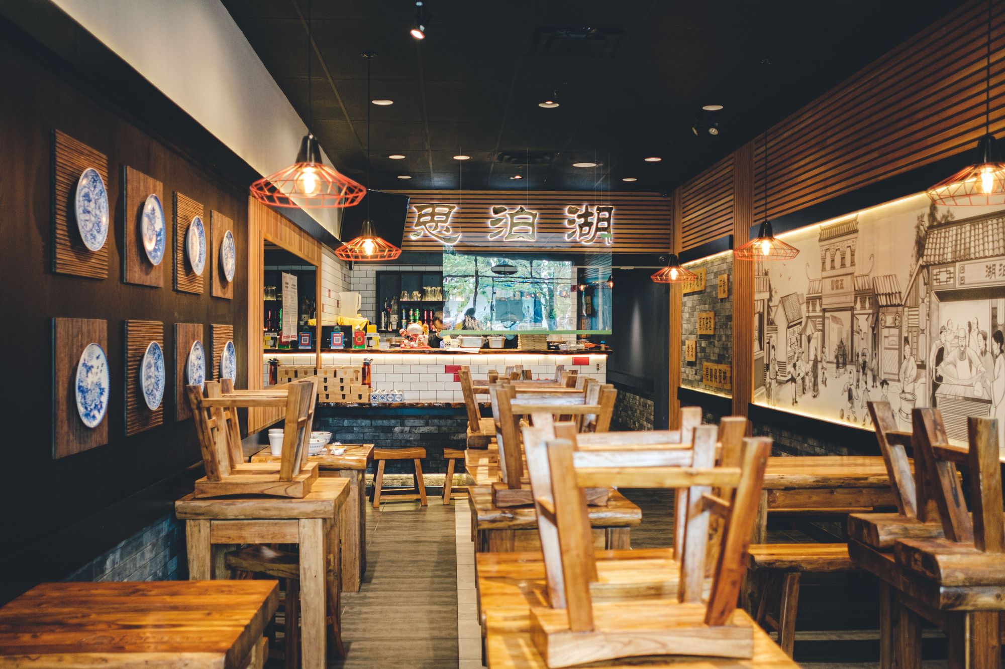 Sip Bowl is a neat-looking restaurant with all the vibes of a small Chinese town. Thick wood tables are arranged looking like they've had noodles stretched and pulled on them, there are ornamental plates on the wall, and there is a long wall mural describing some rural life in China. This is my kind of vibe for noodles and a much more interesting environment than taking something out to go.