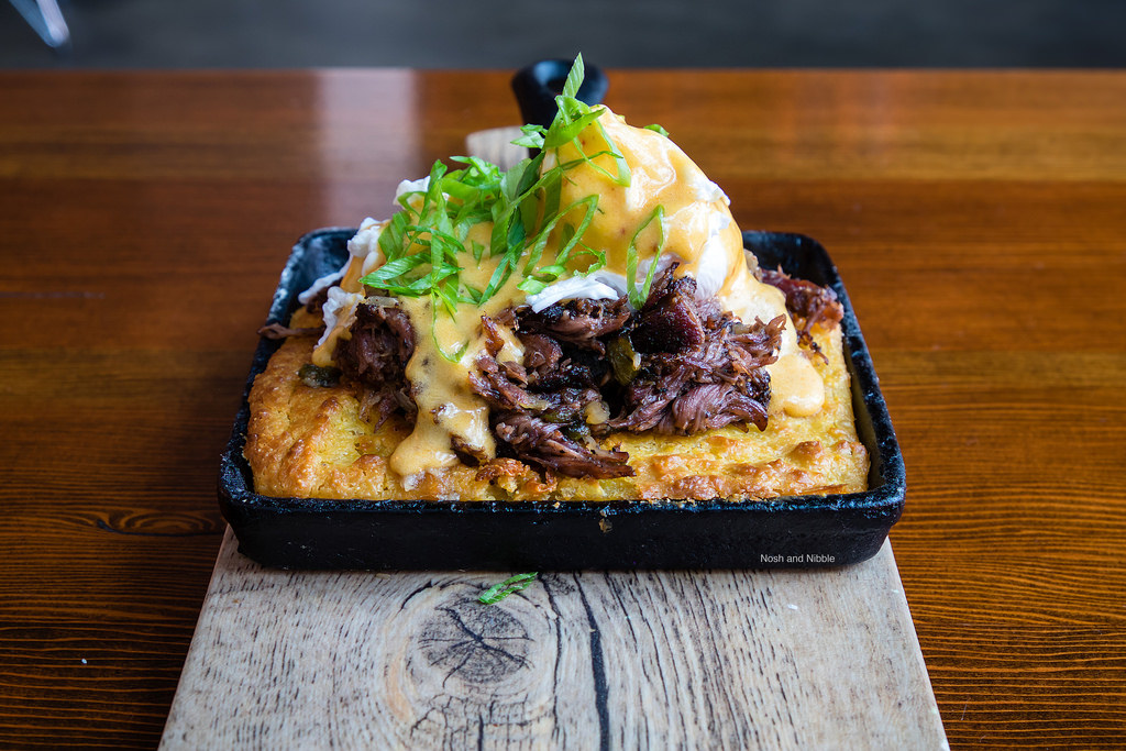 The underrated ingredient here was the skillet corn bread. Not only was this a cute presentation (square skillet and all), but the warm corn bread made for a great blanket of carbs to hold the rest of the benedict in each bite.