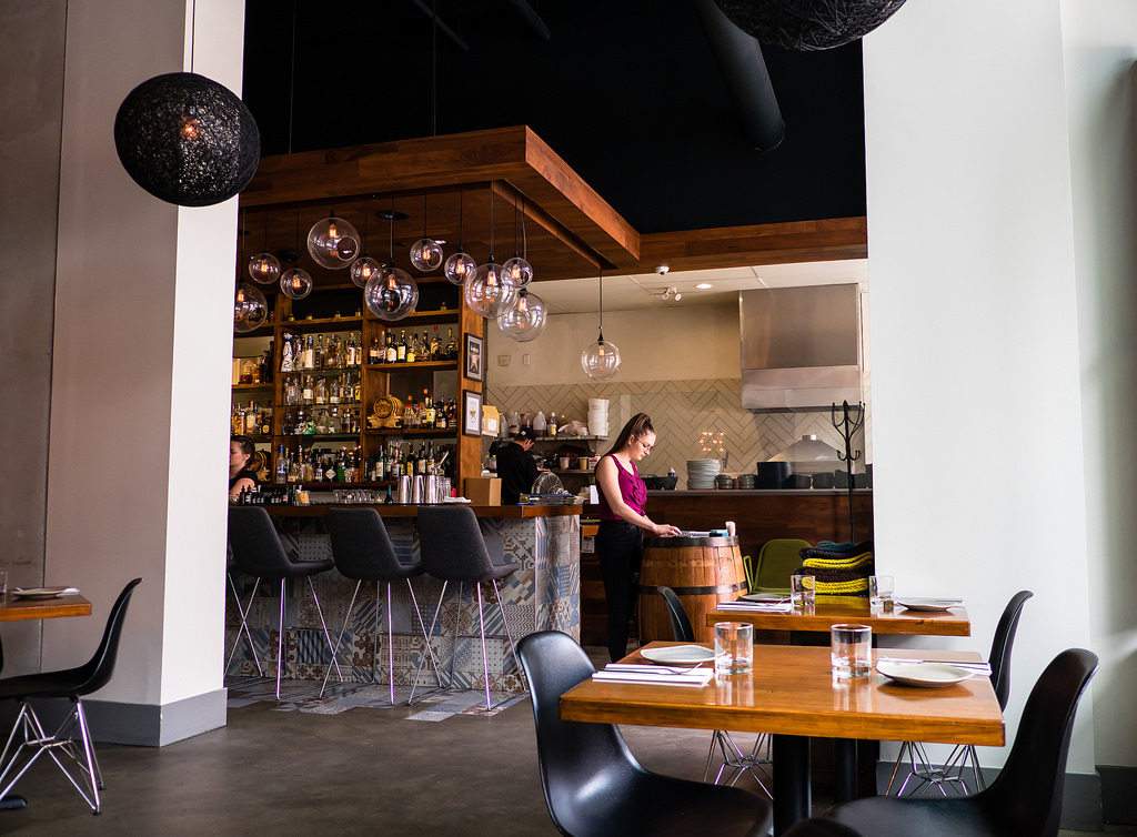 El Santos is a chic restaurant located in the downtown neighbourhood of New Westminster (also known as its bridal sector). Inside are a variety of seating in booths, tables, bar, patio, and a private room. It's a huge space that can seat over 125 guests. There are Eames-style chairs everywhere giving the space a modern look. Gotta say, this is one of the better-presented restaurants in New Westminster (up there with Piva, though Piva took a few more years to arrive in the scene).