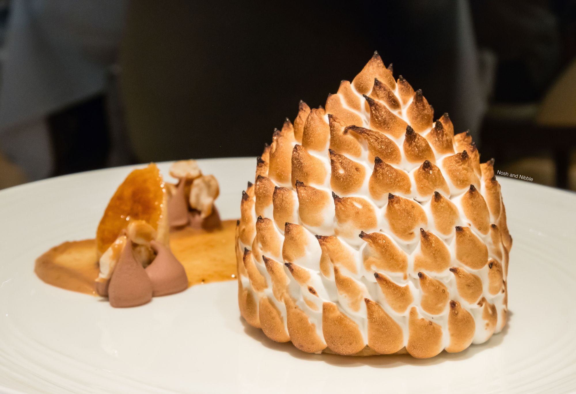 Moving onto dessert, we had the baked Alaska which came with caramelized banana rum ice cream, browned butter cake, peanut butter cremeux, banana puree, and candied peanuts. At $20, this is pretty much the highest echelon of dessert you can have in a Vancouver restaurant. Ingredient-wise, I don't think this was too game-changing but it certainly looked pretty. The best part was the browned butter cake which was best enjoyed by cleaving through the meringue and ice cream. After having the A5 though, maybe skip the dessert and cram another 2 ounces into your A5 order.