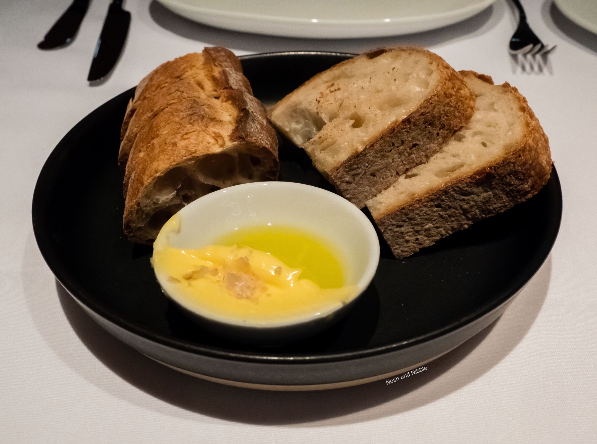 Like any reputable steakhouse, dinner starts with some house bread. The sourdough tasted fresh and had a good chew on the crust. There were large air pockets in the sourdough that created some anxiety over bread density but I used that as an opportunity to layer more house-smoked butter (which was delicious, by the way), onto the bread which I could then dip into the olive oil served with the butter.