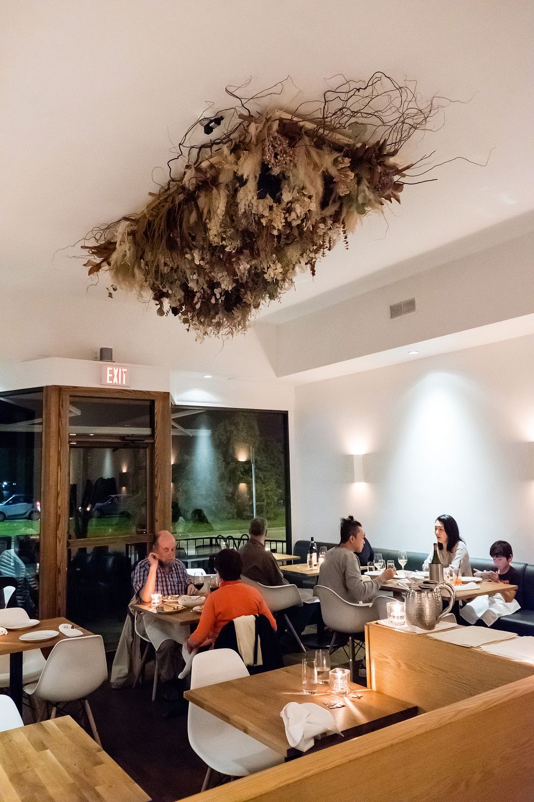 Fiore means flower in Italian. Fiore Famiglia takes up residence in the former Trafalgars Bistro, and with it, incorporates a new look. The dining room is generally in the same shape, but Fiore's installed their signature floral ceiling decoration in plain sight as you enter the restaurant.