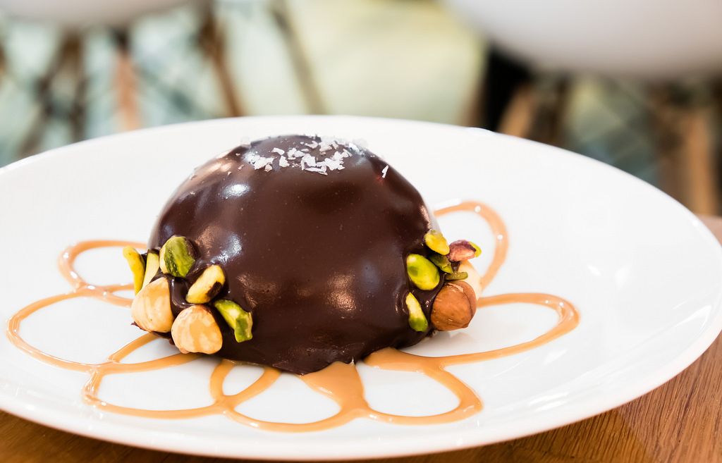 The zucotto was a chocolatey dome holding a chocolate hazelnut mousse and ganache adorned with pistachios and caramel. This was a neat dessert with just enough sweetness and a fun in each scoop.