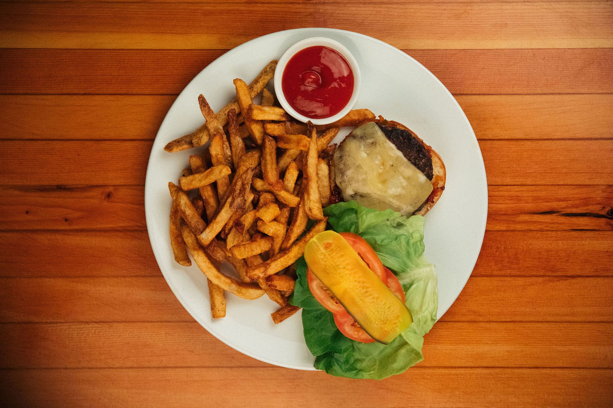 Moving onto some mains, the burger came with gooey cheese, iceberg lettuce, tomato, pickles, and house fries. The classic recipe here delivered on the standard sensations but I think to properly enjoy this burger would be to add in all the trimmings. We didn't get that opportunity so this burger was alright as far as restaurant burgers go in Vancouver.