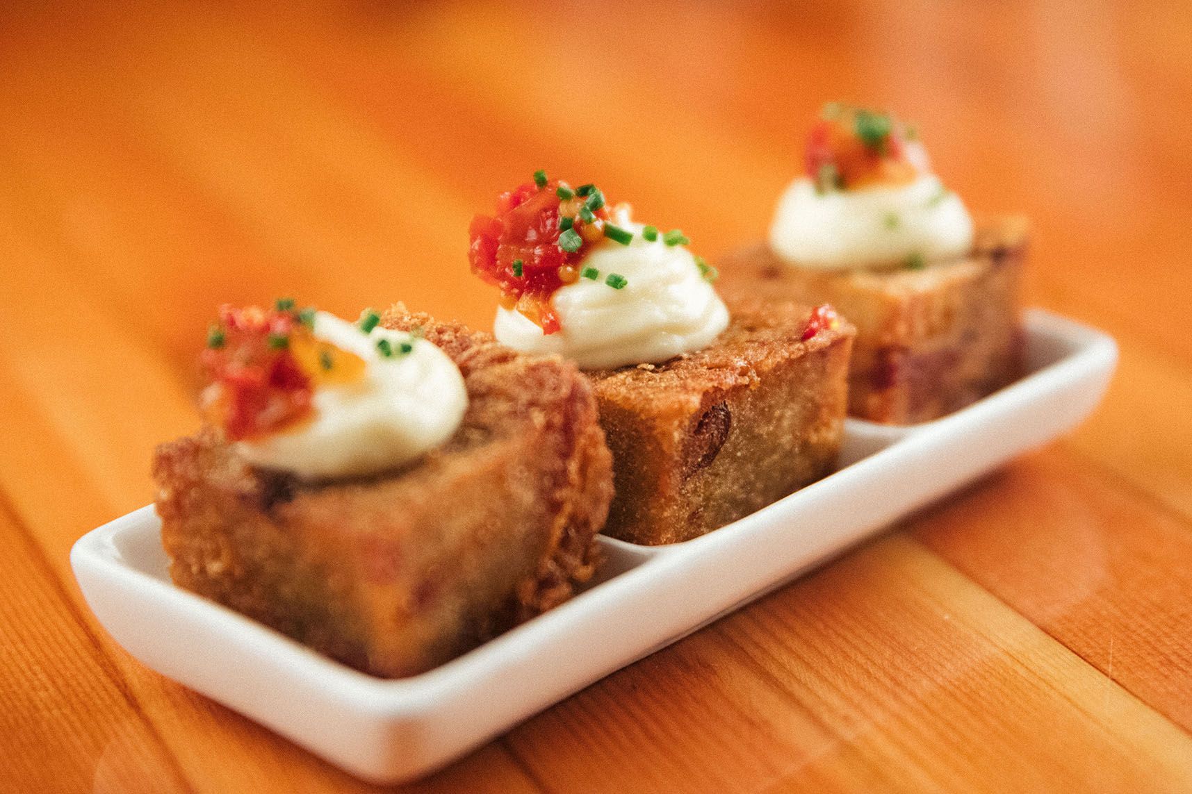 The ham grenades, remants of the previous menu, were delicious tater tot-like cubes of potato and ham meticulously pressed together. I would consider this a dangerous finger food because it's so easy to want more than your fair share.