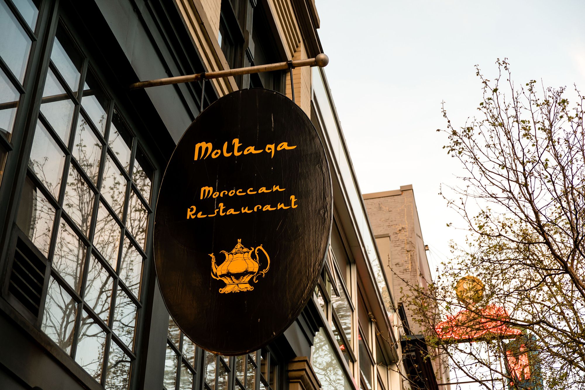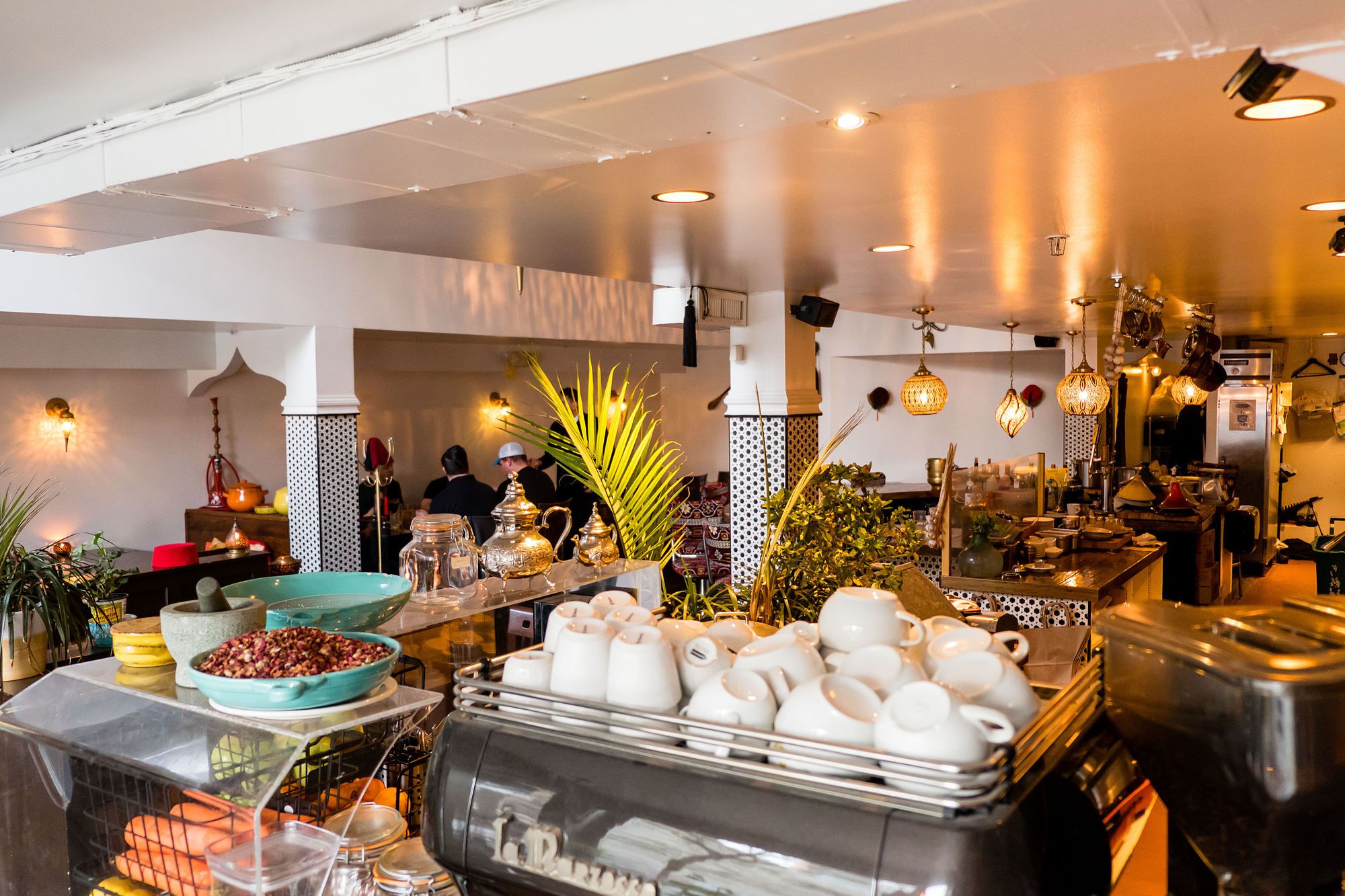 "Moltaqa" means “meeting place” in Arabic. This restaurant takes up residence in the former Acme Cafe space and has completely re-done the furnishings. Out went the diner lights and plastic seats and in came traditional vases, cushions, and other furnishings. In the kitchen you'll spot a number of pendant lamps with holes in them, letting the light peek through. I'm sure there is a better name for these lamps but take a look for yourself. They were all beautiful.