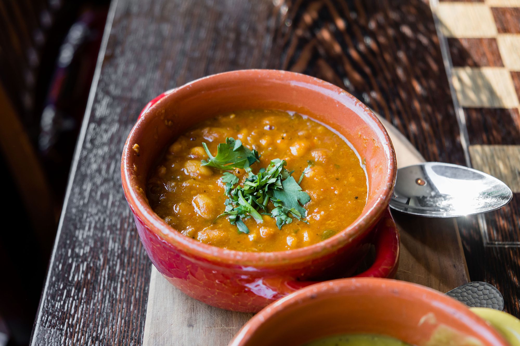 Our other soup was a loubia stew, a traditional Moroccan white bean stew with tomato, ginger, and cilantro. Personally, I think it's quite cool that an ingredient like cilantro even lives in Moroccan cuisine – I'm mostly used to it being present in Vietnamese pho. This stew was hearty with properly cooked white beans in a tomato-based stew. This soup actually packed a little bit of heat because ginger is quite a flavour enhancer. Like the bessara this was served in a cute little pot.