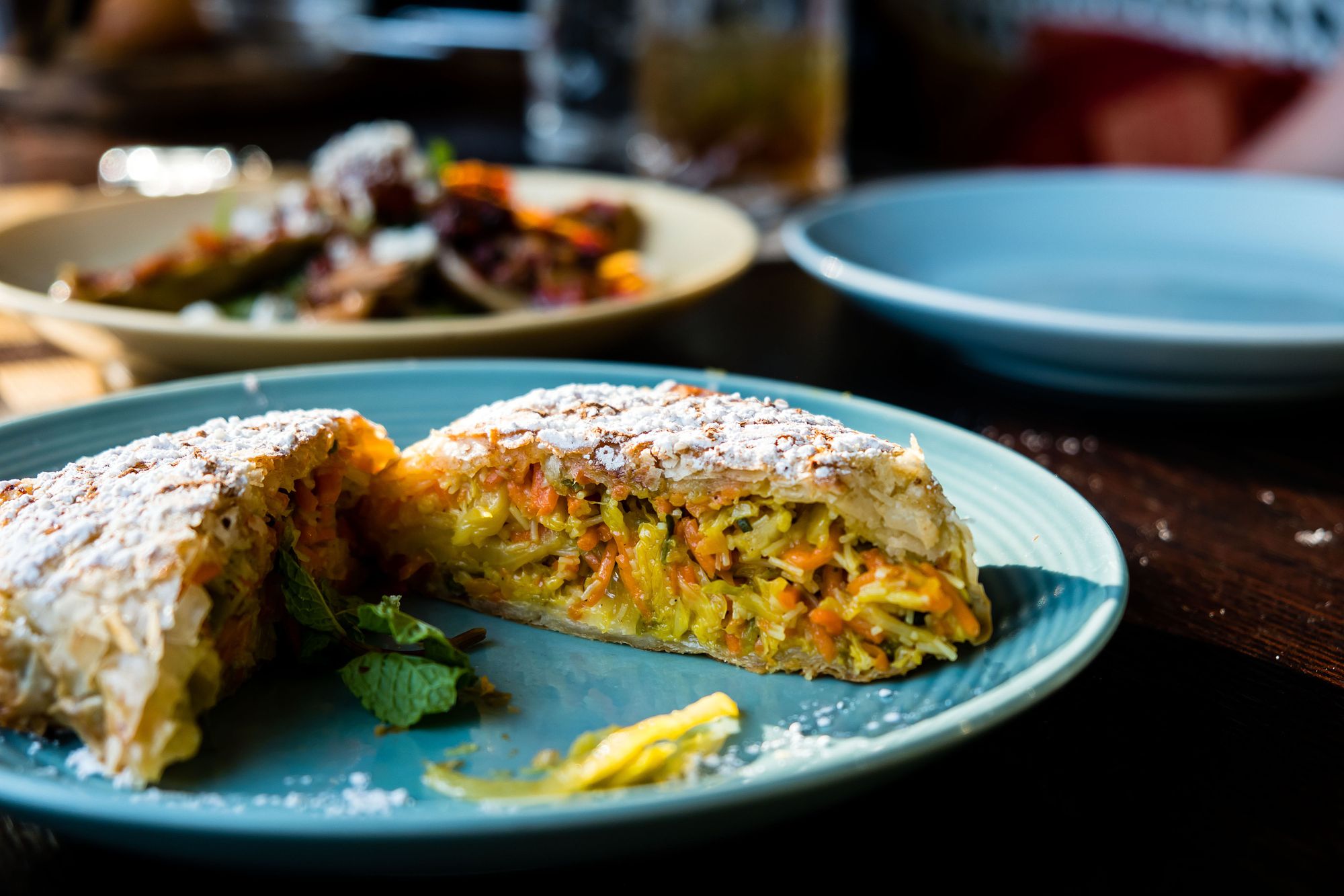 As I cleaved in, I was happy to feel the pastilla part ways with my knife as opposed to completely falling apart. The pastilla crust made for a fun, doughy chew while the spiced vegetables warmed my soul like it was being seated next to a fire. The pastillas are definitely something to order if it's your first time at Moltaqa.