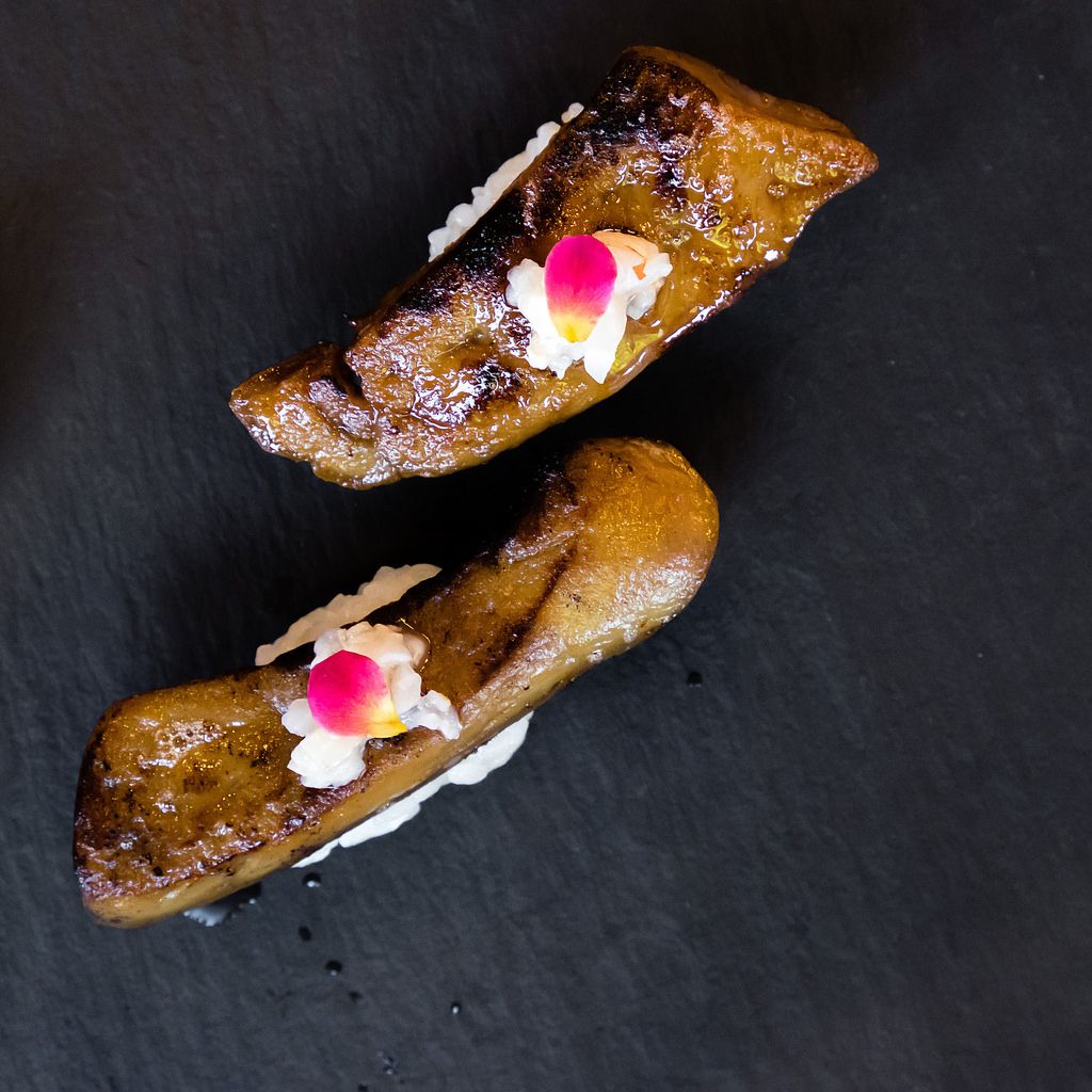 The foie gras nigiri was a French take on nigiri. Slabs of foie gras were pressed onto the tops of rice and served as a 2-piece. I thought this was a cool concept but will prefer to stick to fish on rice in the future. This felt like putting a stick of butter into my mouth. I normally love butter but this combination was too wild for me.
