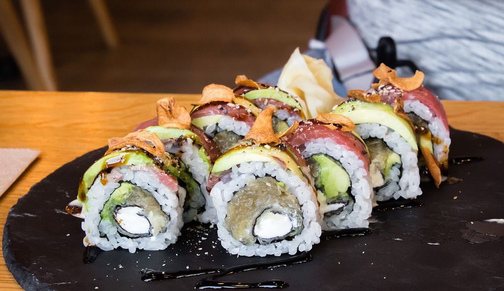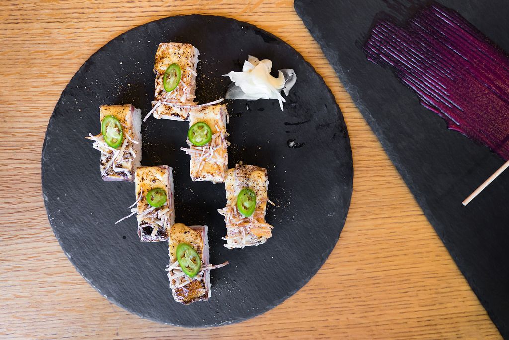 The Yugo roll was my favourite roll of the night. Featuring caramelized onions, cheese, avocado, kimchi mayo, beef tataki, garlic chips, this roll was dressed up to the nines but still delivered on flavour. Caramelized onions add a savoury kick to any dish and this roll was no different.