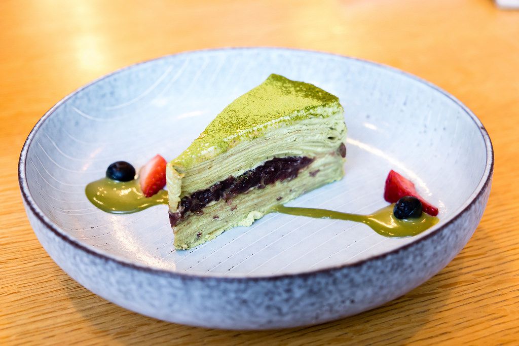 Last but not least, the matcha mille crepe, which was on the happy hour menu. First off, how often do you get desserts on a happy hour menu? If I worked closer, I would definitely come here and splurge on the desserts. The mille crepe had fine layers of cream and red bean pressed down in layers of crepe. No knife was needed for this dessert and my fork cleaved down to the bottom with zero issues.