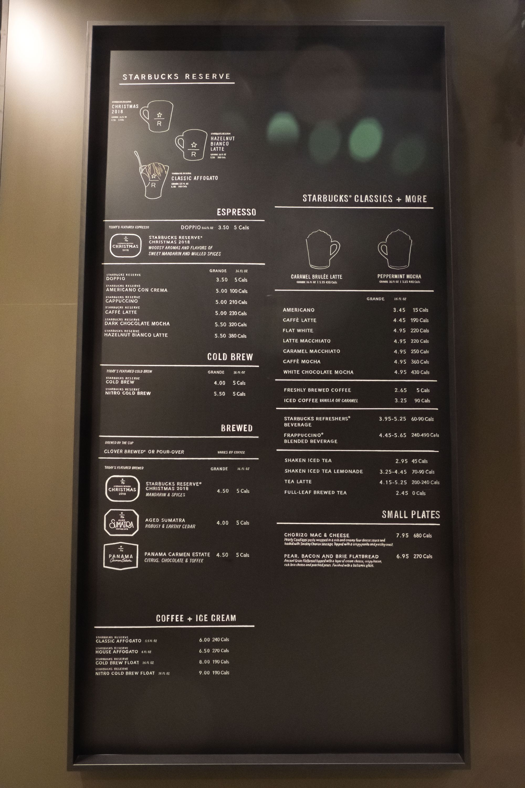 The main menu draw at a Starbucks Reserve Bar is the option to choose your brewing method using high-quality equipment and a high class of "Starbucks Experience". I've always been more of a sit-in kind of consumer so the glassware and finer ambiance of this location (and the location in Mount Pleasant) are right up my alley.