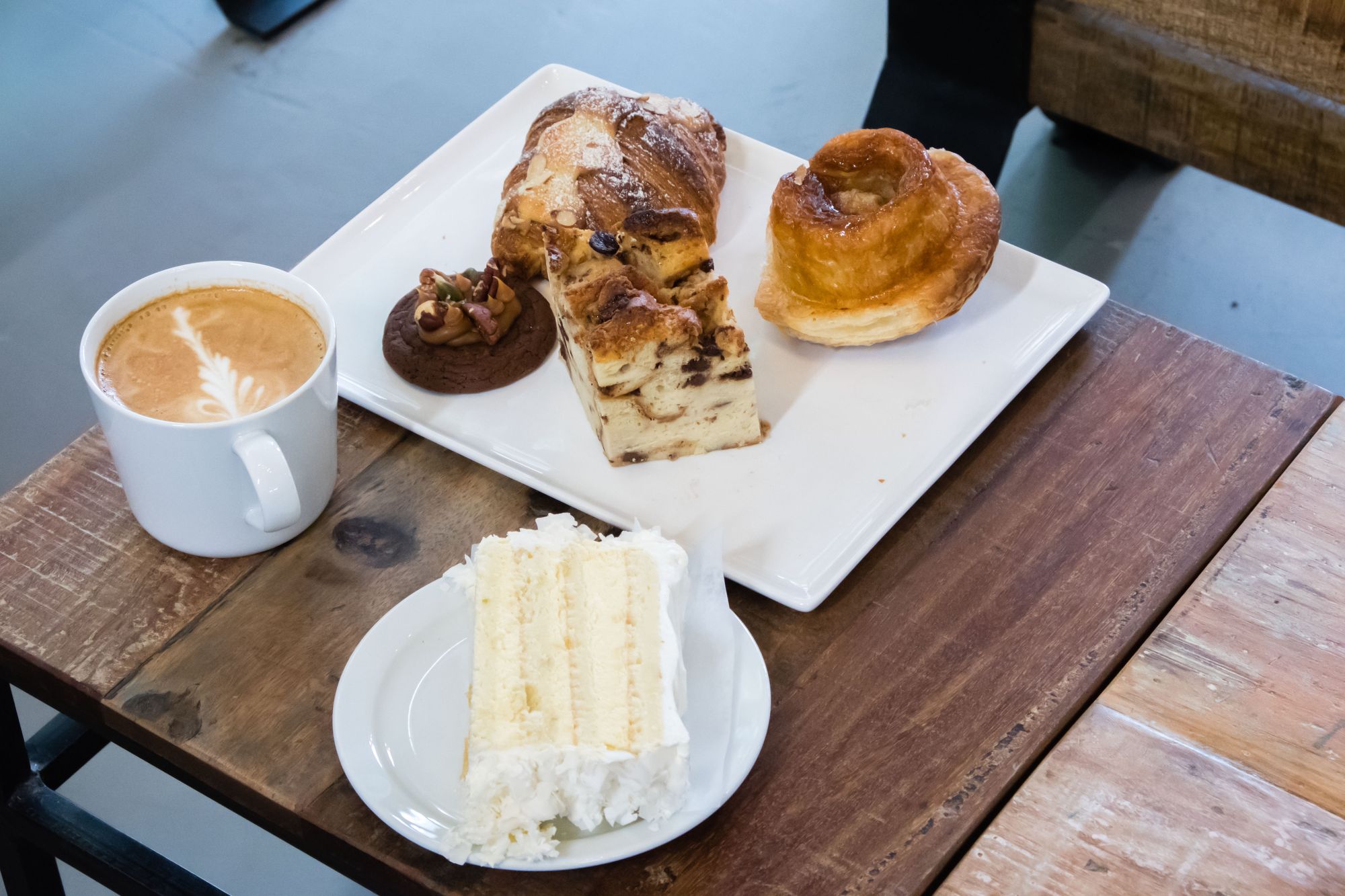 For dessert, we had a slice of passionfruit cake. This featured layers of passionfruit filling and finished with a layer of cream and coconut slivers. I loved the clean lines between the cake and filling and that everything kept itself together as I cleaved my fork in. The passionfruit filling had a fresh feeling in each bite. At $4.75, this is borderline Breka-style pricing and a great competitive price against other cakes available in the neighbourhood. I personally lean towards the more bready things on the menu when I'm in a bakery but it's great news for anyone looking for a slice (or more) of cake that they won't break the bank doing so (looking at you, Tsujiri).
