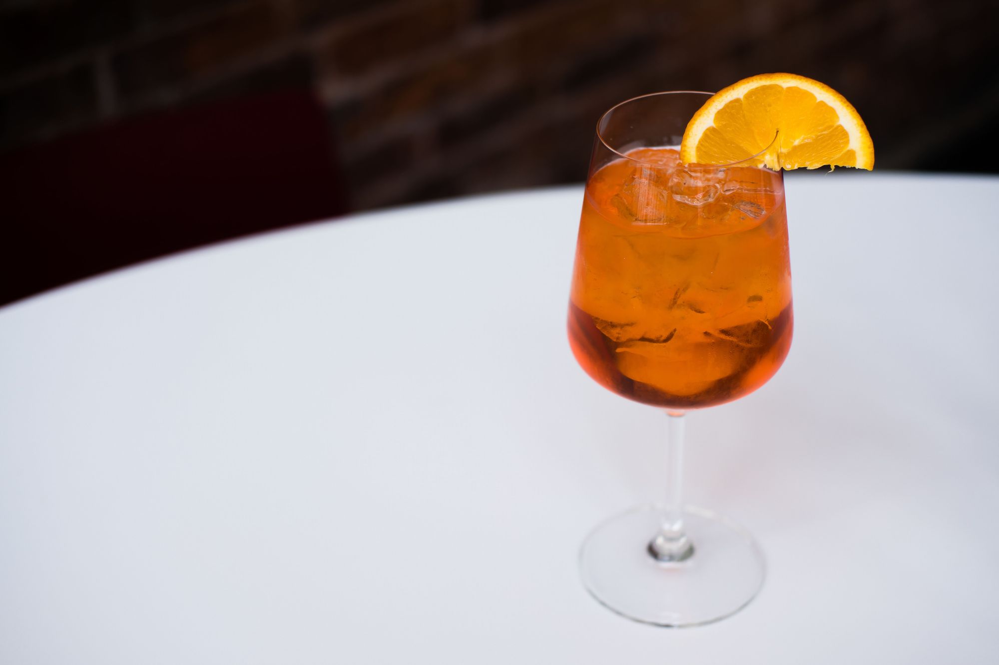 My drink for the evening was an Athena Spritz Cocktail. This was an aspirated cocktail featuring prosecco, Aperol, and soda. This was a classic mix with lots of carbonation and a twist of orange to keep things interesting. In my opinion, ordering a wine-cocktail like a spritz keeps the cocktail lasting longer as diluting wine is generally more tolerable than diluting spirits. Holding this cocktail by its tiny stem also made for a great workout for my hand.