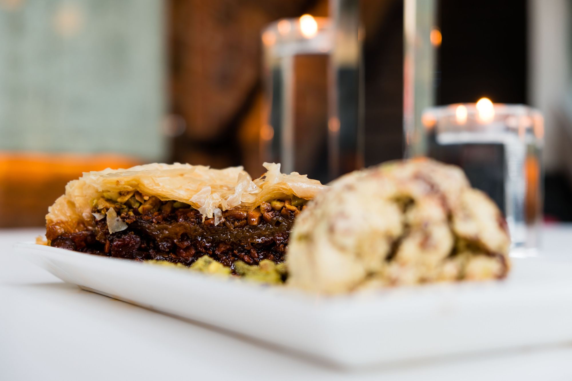 Moving onto desserts, we had both the ekmek and baklava. Both being traditional Greek desserts, I was excited when both arrived at the same time. The ekmek was a vanilla custard with an embedded kataifi (vermicelli-like pastry) crust, whipped cream, and pistachio. This was my favourite of the two desserts. The custard was extremely smooth and mixed well with the pistachio. You know the sensation when you've got a good vanilla ice cream with bits of vanilla bean within? Same feeling here.