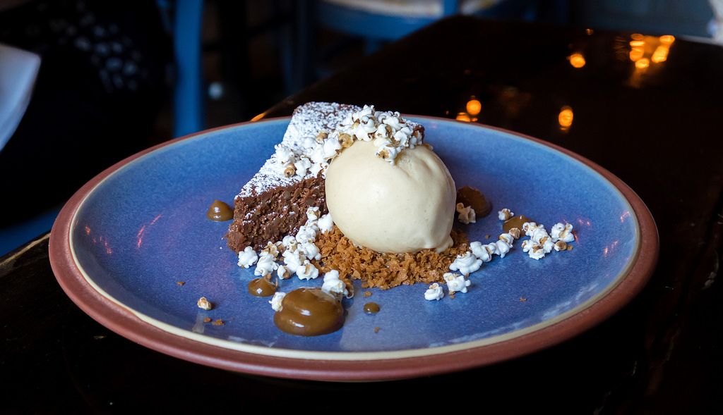 Savoury-wise, I was full, but my dessert cravings still needed answering. Enter the movie night dessert. This was a torta caprese with puffed sorghum and popcorn-flavoured ice cream. Hailing from the Italian island of Capri, this flourless chocolate cake filled in all the gaps in my stomach. The sorghum had a popcorn-like texture and this flavour profile was doubled up by the popcorn-flavoured ice cream which had a roasted feeling here to achieve the effect. I finished feeling very full.