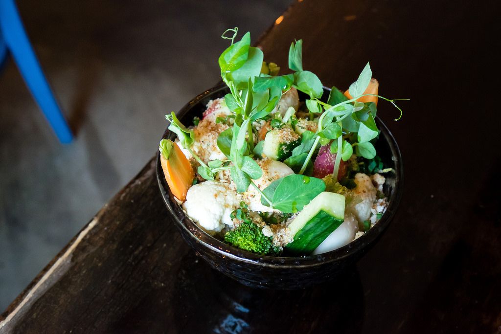 Our other main was the veal schnitzel which came with shishito, spring onion pesto, and white butter. The schnitzel was extra tender on this plate. In addition, all the veggies made for a crunchy, well-roasted affair. This plate sealed the deal in terms of me being full.