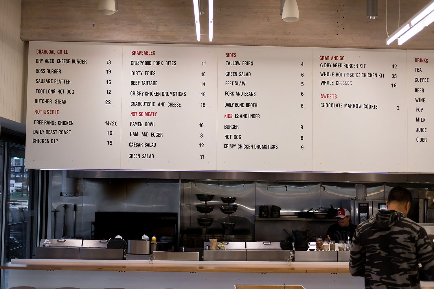Walking into Two Rivers Specialty Meats is a treat in itself. Once you get past the communal tables outside the venue, the butcher and restaurant greet you inside. Having been to a number of butchers, I can confidently say that The Shop looks incredibly clean on the inside. The walls and tiling are so white that it bestows upon you confidence in the whole operation. There is seating for about 40 guests amongst the long tables but the real joy is being up close to the meat as it's butchered and cooked on a giant charcoal-heated grill.