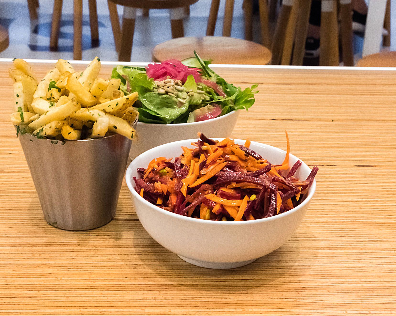 It wouldn't be a full meal unless we had some sides, so we topped out with some beet slaw, green salad, and tallow fries. The beet slaw, like many other things this night, was very juicy and crunchy. The green salad had some pistachio added in to give it some punch.