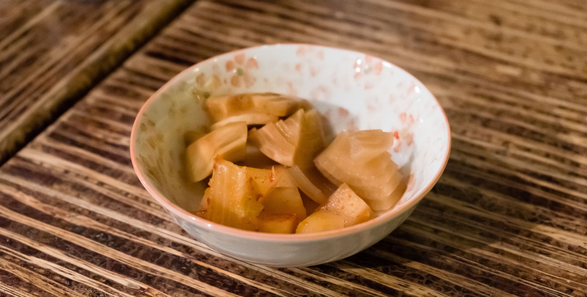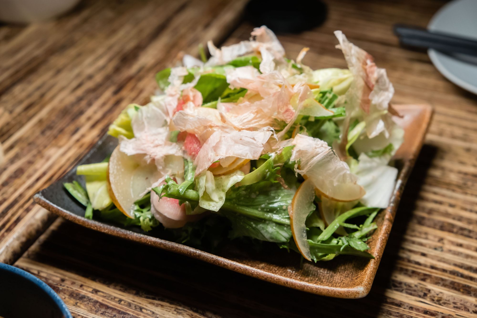 The winter greens salad was served with Asian pear, pickled radish, and bonito. More pickles! This was an unconventional salad and the first dish I've had with bonito flakes (normally reserved for takoyaki). It was also the second salad of this meal and I think salads as a course had already been fulfilled at this point. I'd choose the burdock salad over this winter greens salad if I had to choose a preference.