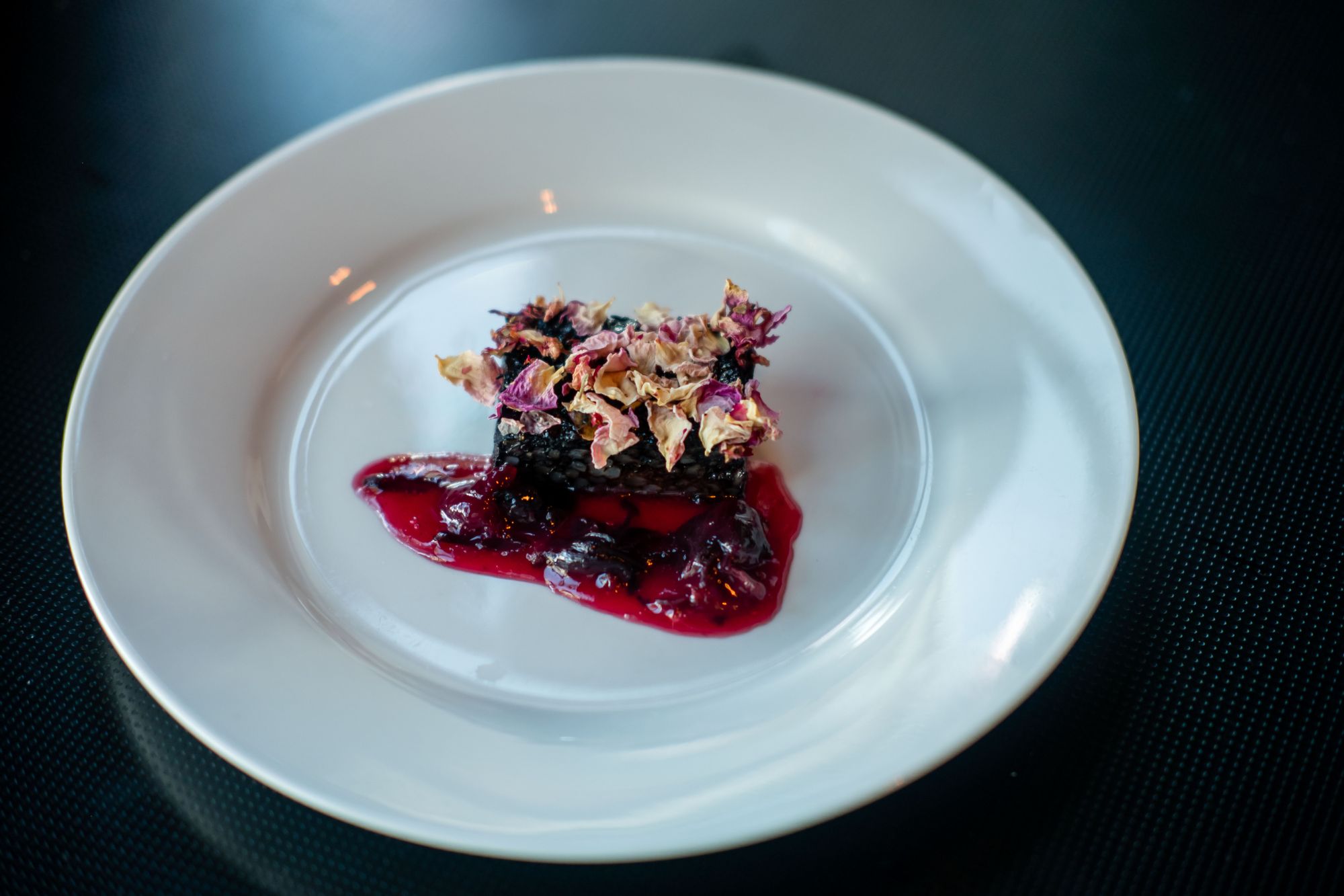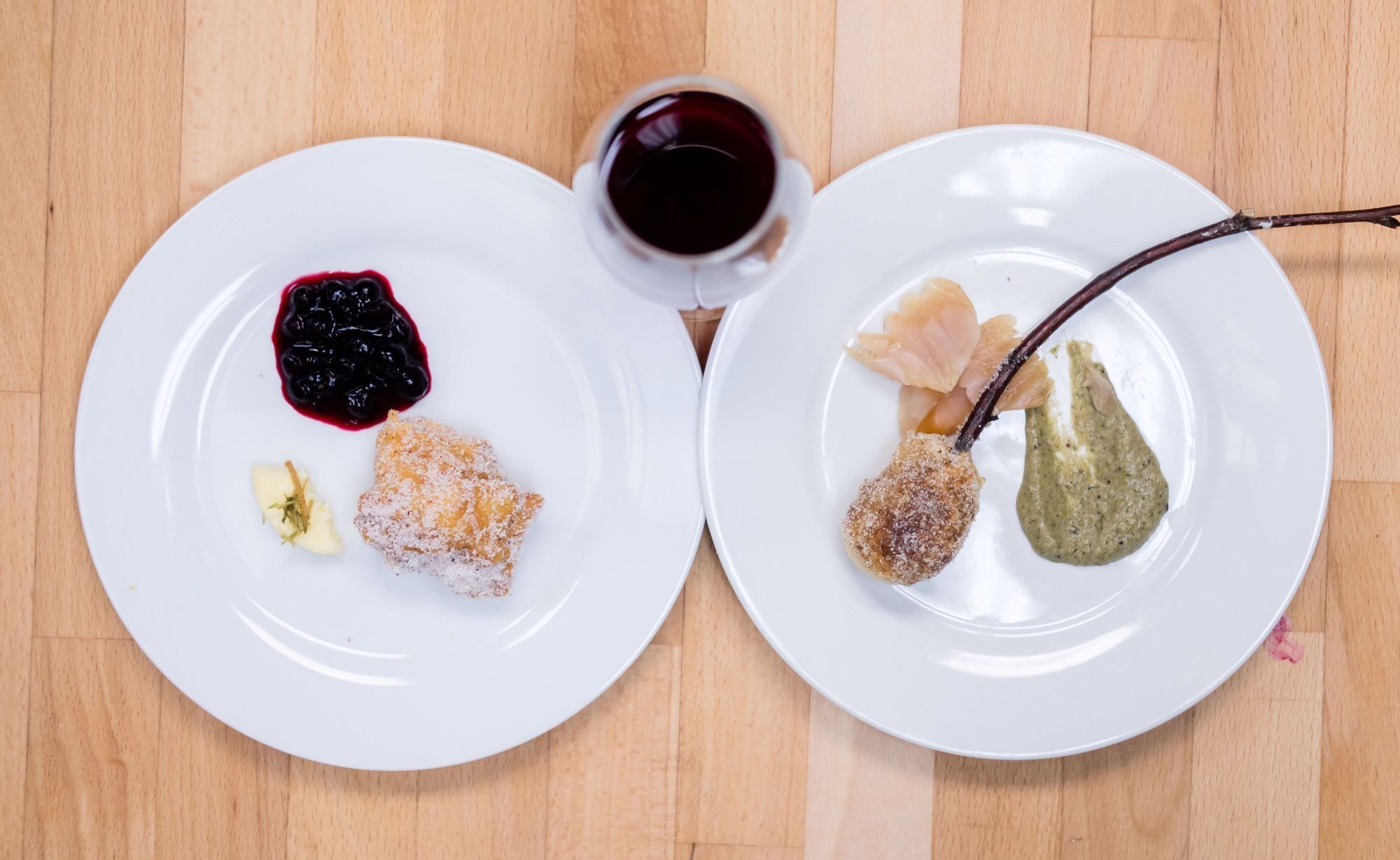 The fire bannock was paired up with a Familia Zuccardi Tito Zuccardi Paraje Altamira 2016. This wine had the standard fruit flavours but a mildly interesting floral finish which carried well with the pine cone pepper of the fire bannock. I preferred this pairing with the smoked fish variety of the firebannock. The sweeter huckleberry just felt like an abstract contrast so I preferred eating that one wine-free.