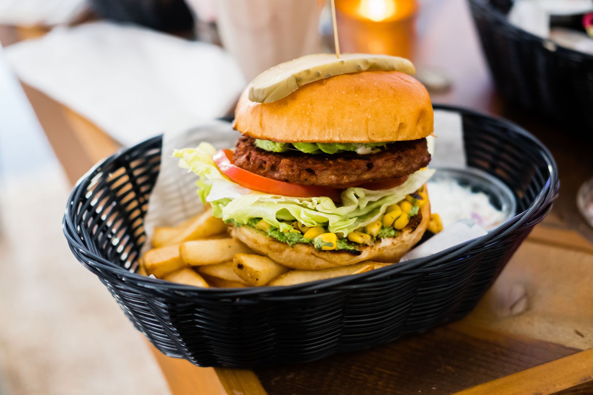 Coming in hot at $17.49 (BC pricing), the Avocado Beyond Burger features a chargrilled, 100% plant-based, Beyond Meat® patty with fresh avocado, pickled onions, roasted corn, lettuce & tomato, jalapeño ranch & edamame hummus, and served with creamy coleslaw & endless local Kennebec fries.