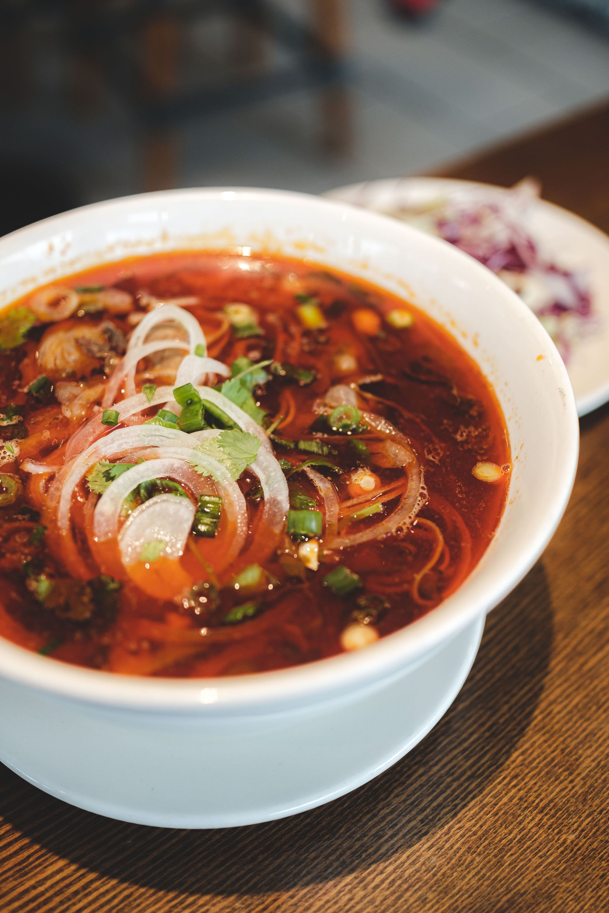 - Spicy Lemongrass Beef Noodle Soup (Bun Bo Hue) ($18)